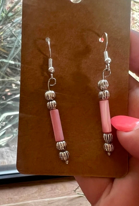Pink shell dangle earrings - summer small earrings